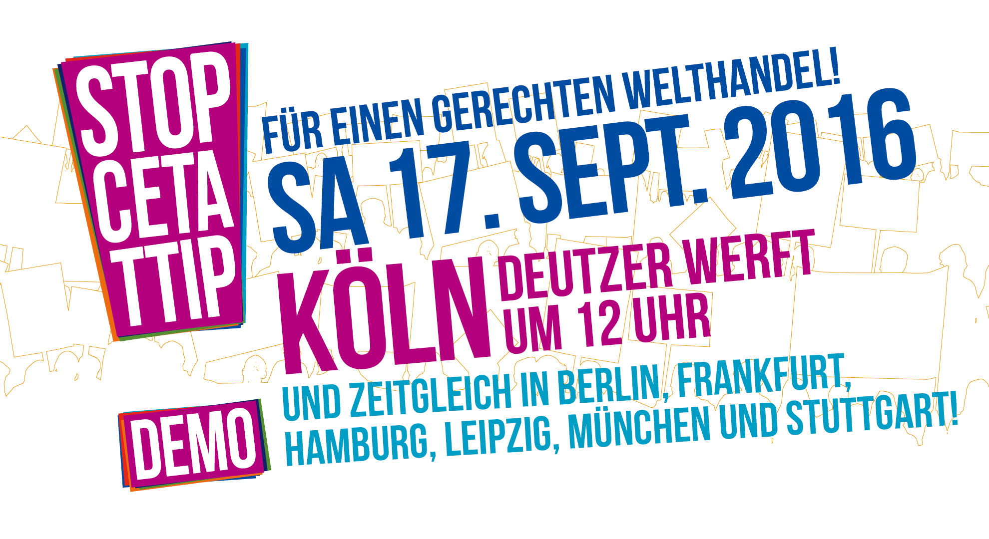 Am 17.09. demonstrieren Menschen in 7 deutschen Großstädten gegen TTIP und CETA. Attac Paderborn und das Paderborner Bündnis gegen TTIP sind in Köln dabei.