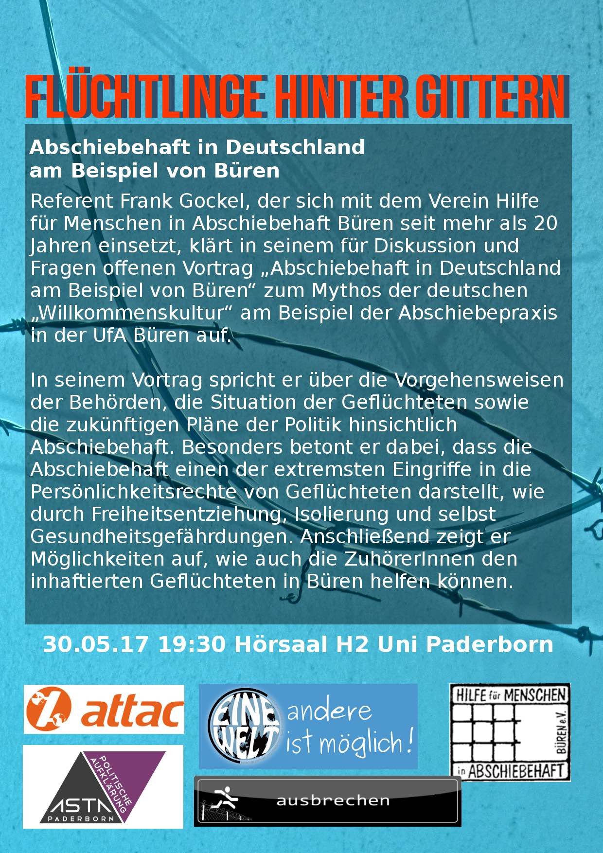 Organisatoren sind der Verein Hilfe für Menschen in Abschiebehaft Büren e.V.Ausbrechen, Eine Welt und AStA der Uni Paderborn.
